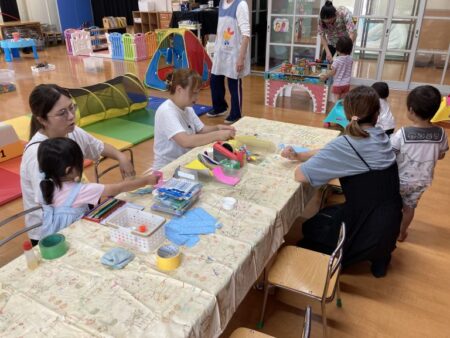 お知らせ TOP > お知らせ > 第4回 スマイル☺ 第4回 スマイル☺ 6月24日(火)に4回目のスマイルがありました。 今回は14組の親子が参加してくれました♪ 今回も雨☔となってしまい…遊戯室でゆったりと遊びました☆ 七夕が近くなってきたので、七夕飾りも作りました🎋 みんなで和気あいあいと、楽しい時間となりました♪ 次回は7月15日(火) 10:00~11:00 です! 次回こそ水遊びを予定しています☆ タオルや水着を持って来て下さい!お待ちしています♡ 2025.07.04